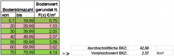 Bodenwert: 30,00 €/m² (= niedrige Verkehrswertstufe)
